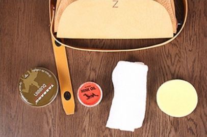 上油保养最好用专业的皮革产品,而好的产品往往是纯动物油制成的,比如貂油、绵羊油。一般一年上一次油就够了,让皮革保持光泽度和柔软,并延长皮具的寿命。
