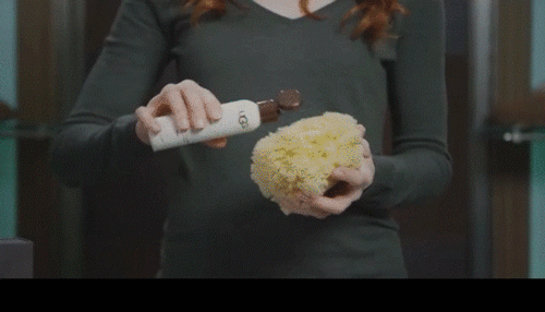 其次,用海绵蘸取无色貂油或者绵羊油,轻轻揉搓,让油充分、均匀地浸润整个海绵。