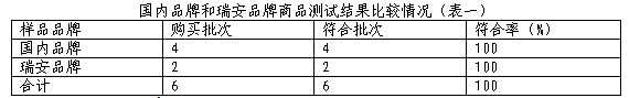 从测试结果来看,本次比较试验4个国内品牌和2个瑞安品牌样品都通过所有测试项目,综合表现优秀。