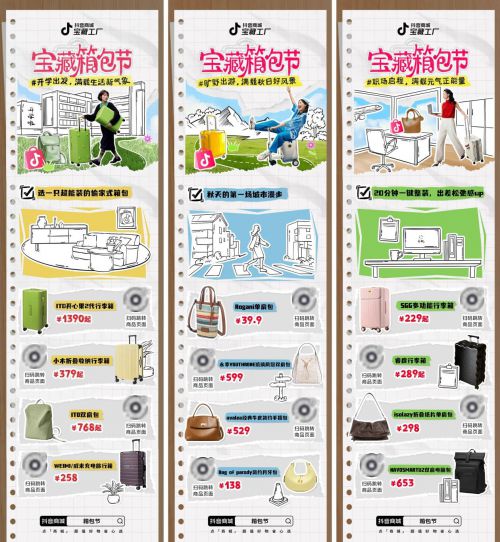 为了满足出游开学季大众的箱包消费需求,8月11日至8月24日,抖音商城推出「宝藏工厂宝藏箱包节」主题活动,携手广州狮岭、河北白沟、江西新干、浙江平湖等箱包产业带宝藏工厂,为大家带来丰富优质的源头箱包好物,为便捷出行提供更优的箱包解决方案,引领箱包消费新趋势。